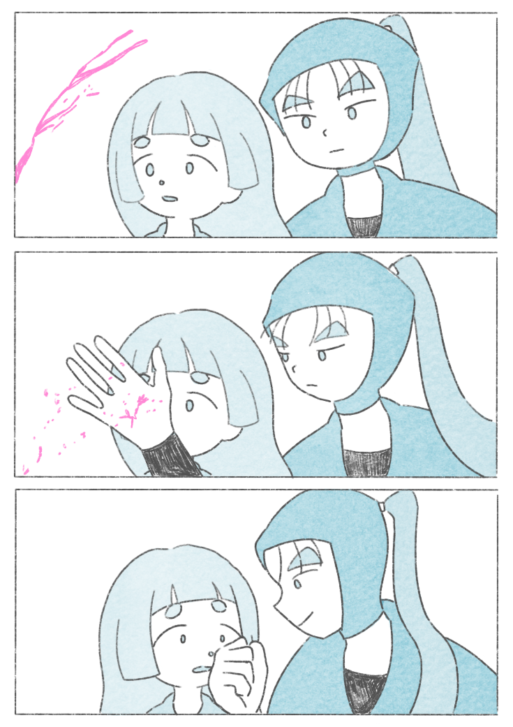 쇼자에몽은 괜찮다며 손사레를 치다가 결국 조금만이라며 하나마루의 무릎을 베고 잠들었다. 반쯤 잠에 빠진 채 자신은 하나마루를 믿고있다며 우물우물 말하는 쇼자에몽이 귀여워 조심스레 머리를 쓰다듬는다.